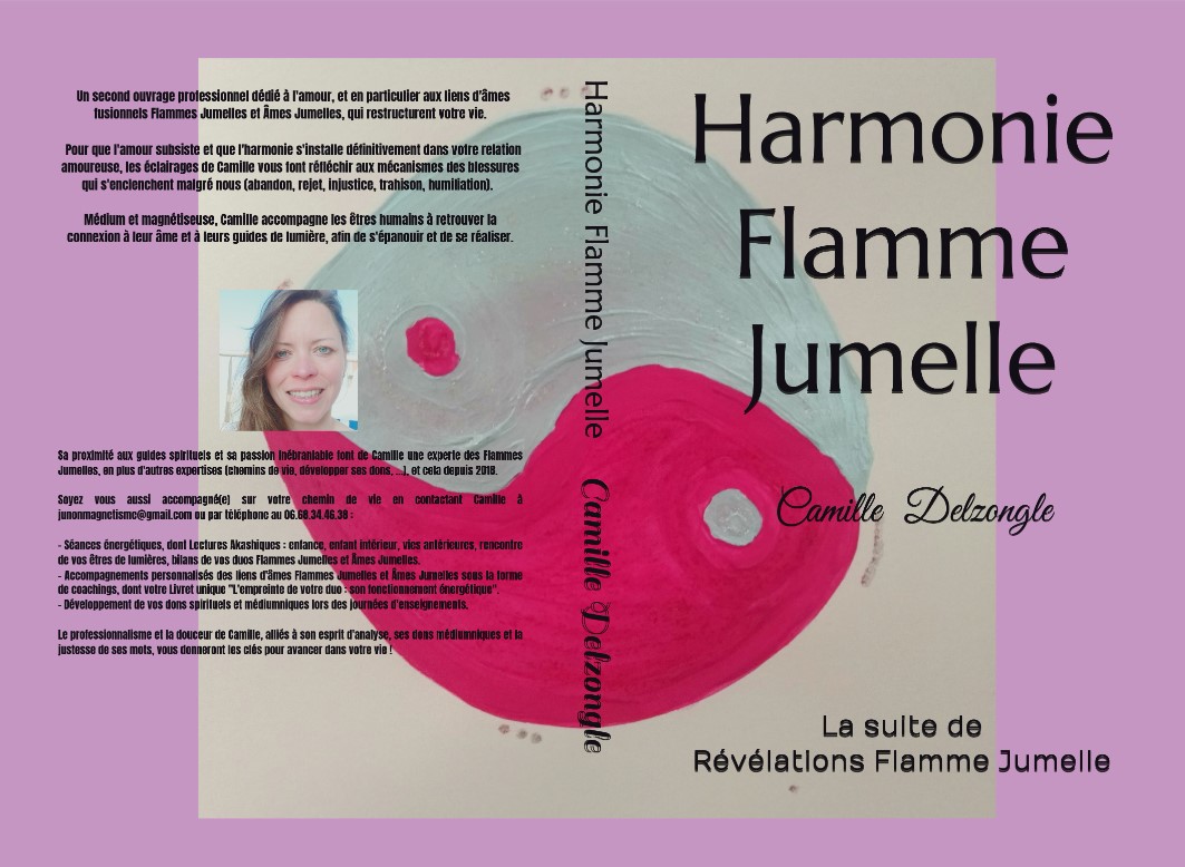 2ème ouvrage professionnel sur les Parcours Flammes Jumelles et Âmes Jumelles. - Données Thérapeutiques et Médiumniques. - La suite de "Révélations Flamme Jumelle", le 1er ouvrage professionnel de Camille, experte Flammes Jumelles depuis 2018. Un guide du lien d'âmes Flammes Jumelles en particulier, qui vous accompagne vers l'harmonie de la relation. Empreint de professionnalisme, douceur, justesse. Tarif : 25.80 € par CB (frais informatiques et associés inclus) ou 24€ par Chèque ou Virement + Frais postaux à ajouter lors de la validation de votre Commande (Lettre Suivie, Colissimo, ... France / Etranger). Vous recevez votre livre chez vous sous 1 à 2 semaines !