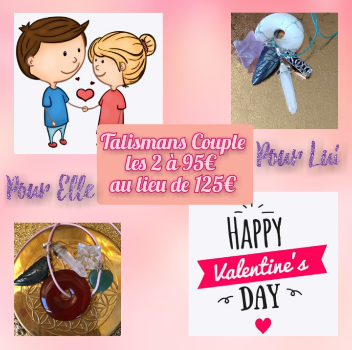 Ces Talismans crées sur-mesure par Camille-Junon Magnétisme ont un grand apport : équilibrer vos énergies. Lot de 2 talismans : "Elle" et "Lui" (énergies féminines et énergies masculines présentes dans chaque talisman pour un équilibre intérieur réussi). Offre spéciale : 90€ au lieu de 120€.